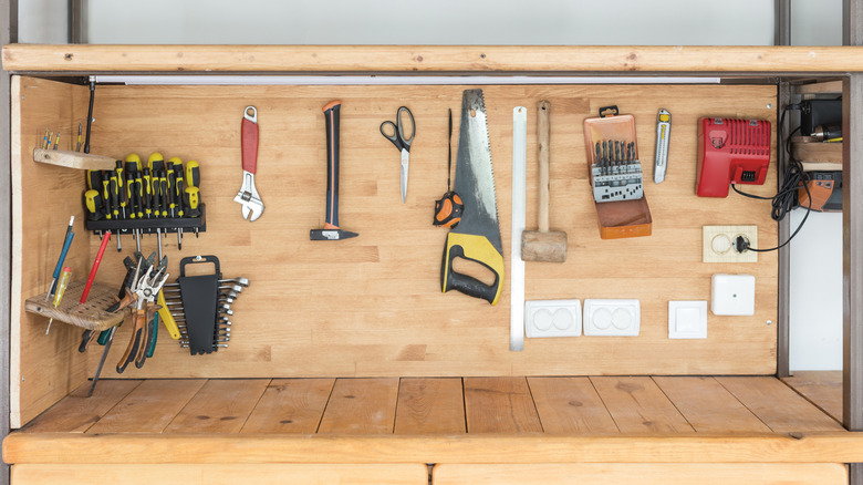 If you choose to add a workbench area, Comiskey says, “Safety is key here. Ensure outlets are properly grounded, and that tools are stored securely out of reach of children …” Consider the available space, being sure to leave ample room for car parking and other uses; workbenches benefit from 3 feet of clearance. Common widths for workbenches range from 48 to 96 inches. Incorporating a pegboard or other tool storage systems near the workbench adds to the workshop feel.