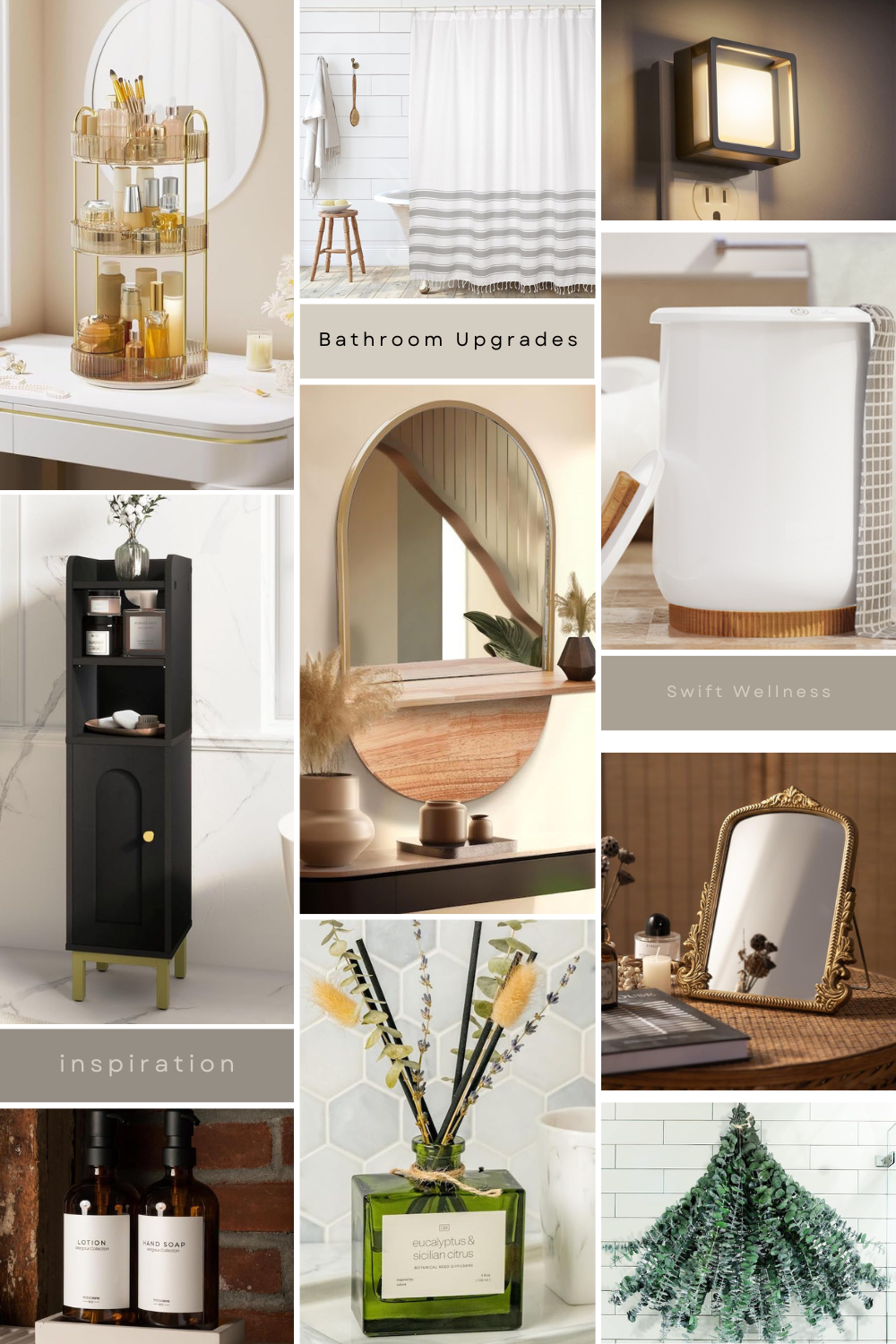 Much like mirrors, changing out the hardware on your sink can make for a dramatic upgrade. This black and gold faucet is luxurious and its 3-hole design means that it can adjust to fit most sinks. It comes in rose gold, nickel, and brushed gold finishes to match any bathroom aesthetic, too.Â