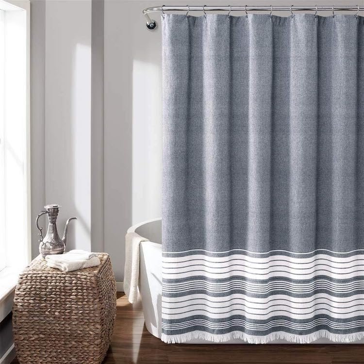 For those that prefer more simple decor, this cotton shower curtain adds a clean touch to your bathroom. With built-in ring holes and a water repellent design, it’s the one-stop shop for your bath–you don’t even need to worry about a liner! When it needs to be cleaned, simply toss it into your washing machine.Â