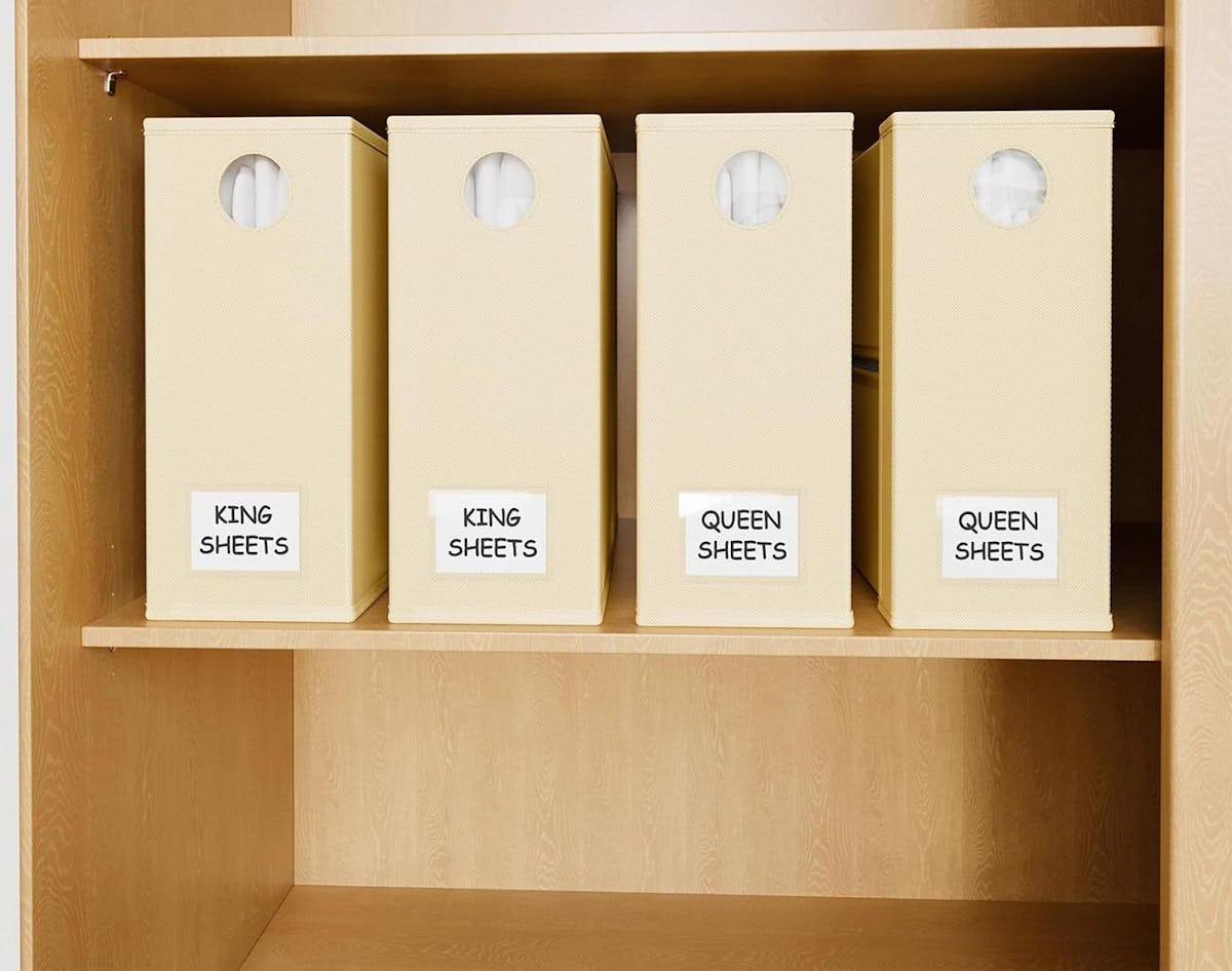 Structured with a linen-like material on the outside, these bedsheet boxes help you organize and streamline your linen closet once and for all. They also have a clear hole for visibility, removable cards for labeling, and a fold-out zippered design for easy packing and retrieval. Each one is large enough to fit sheets, a duvet cover, and two pillowcases.