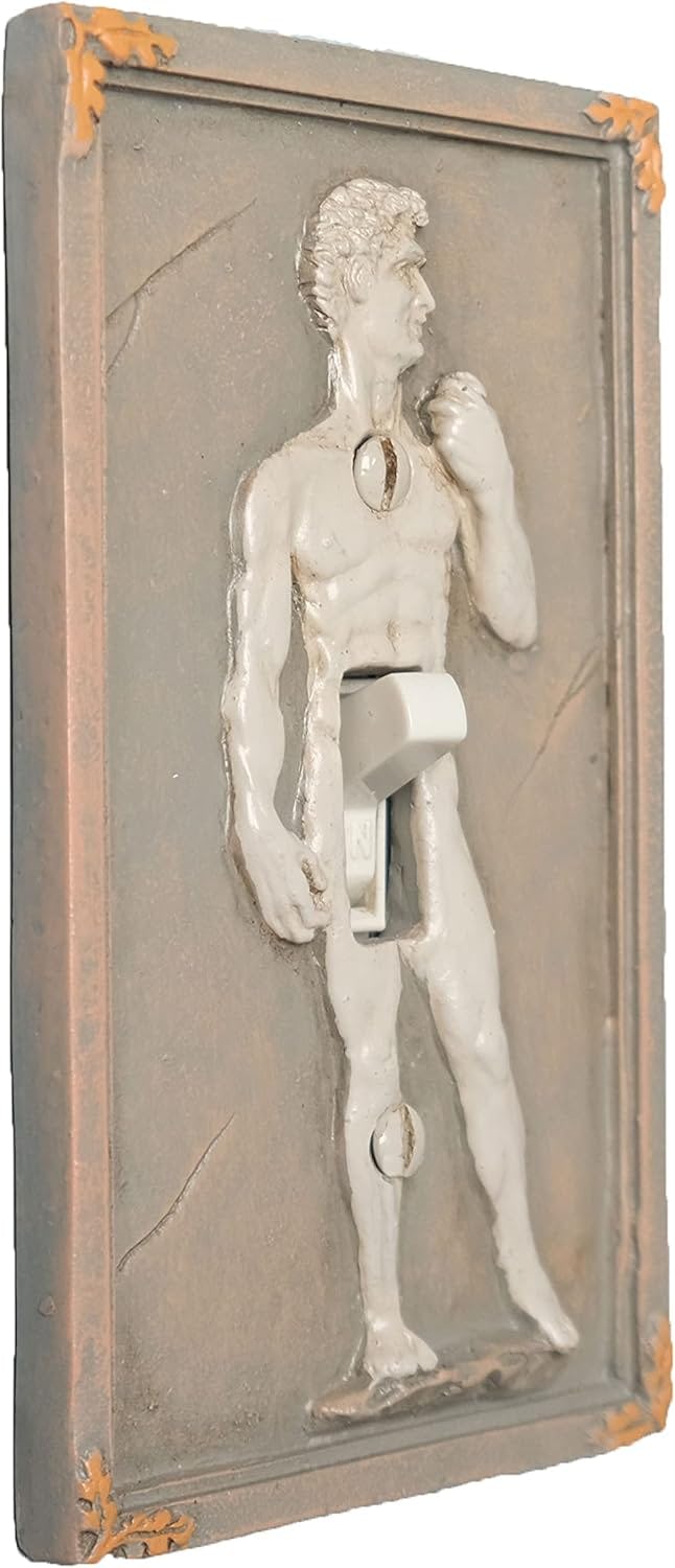 Turn any space into a museum (albeit one that gets a lot of laughs) with this light switch plate inspired by the statue of David. The plate has a worn, weathered look, while David himself has a cutout for the switch placed in a very precise location. Matching hardware is included for easy installation.