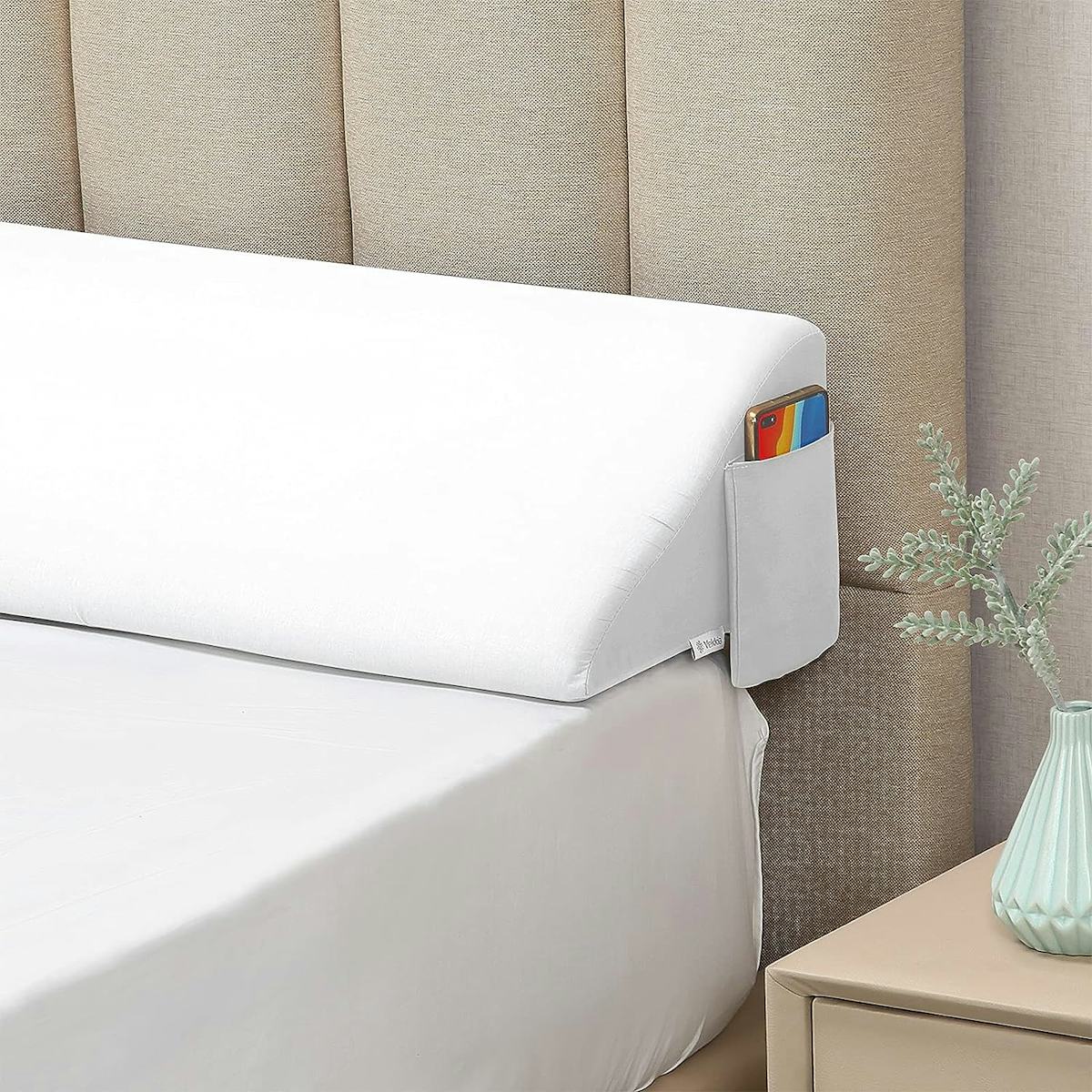 Comfort isn’t the only benefit you’ll enjoy when using this wedge pillow — it also helps prevent items from falling between the mattress and the headboard gap. The 60-inch wide pillow is made from high-density foam for maximum support and durability. Plus, it features a machine-washable cover that’s soft and breathable and has built-in side pockets for convenient storage of small items.